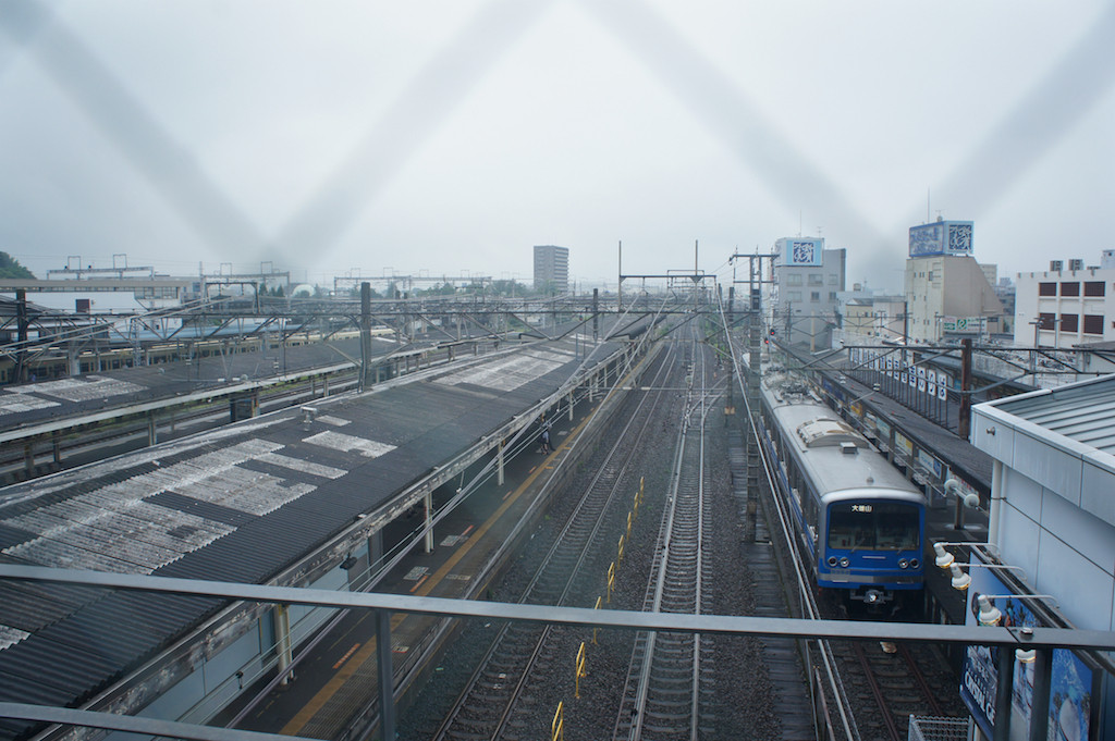 駅のホーム、霞の向こうに小田原城が。こちらも初めて見たなぁ。今まで気づかなかったのかしら。