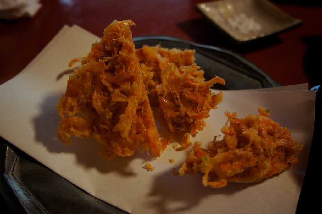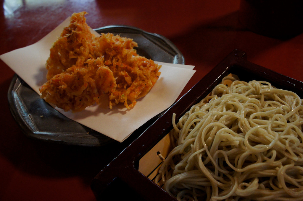 そして十割そばに駿河湾の生桜えびだけのかき揚げ。かどのたった香り高いそばにサックサクでコクのある天ぷら…あぁ美味すぎる。