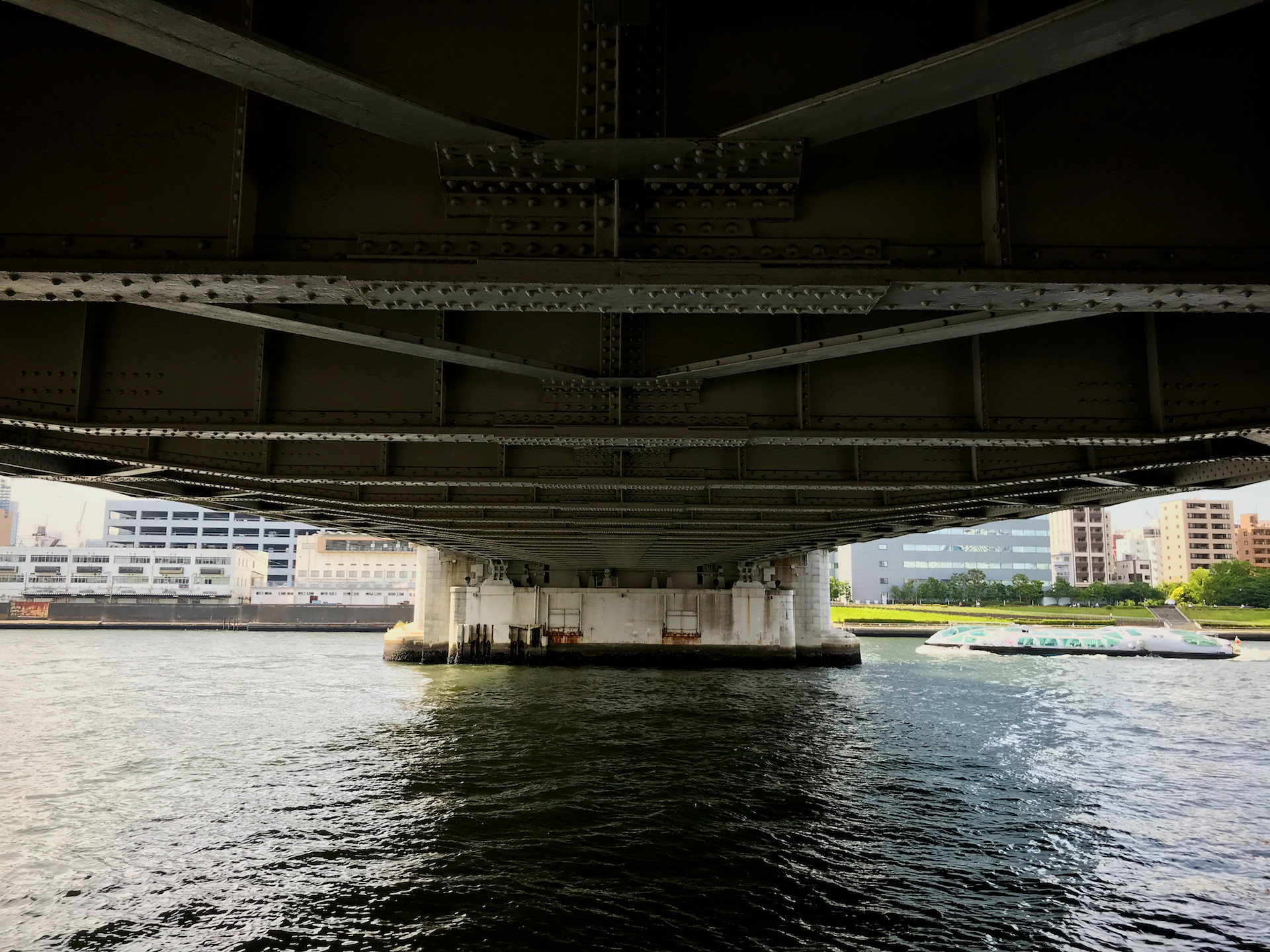 隙間から隅田川がスケスケである。