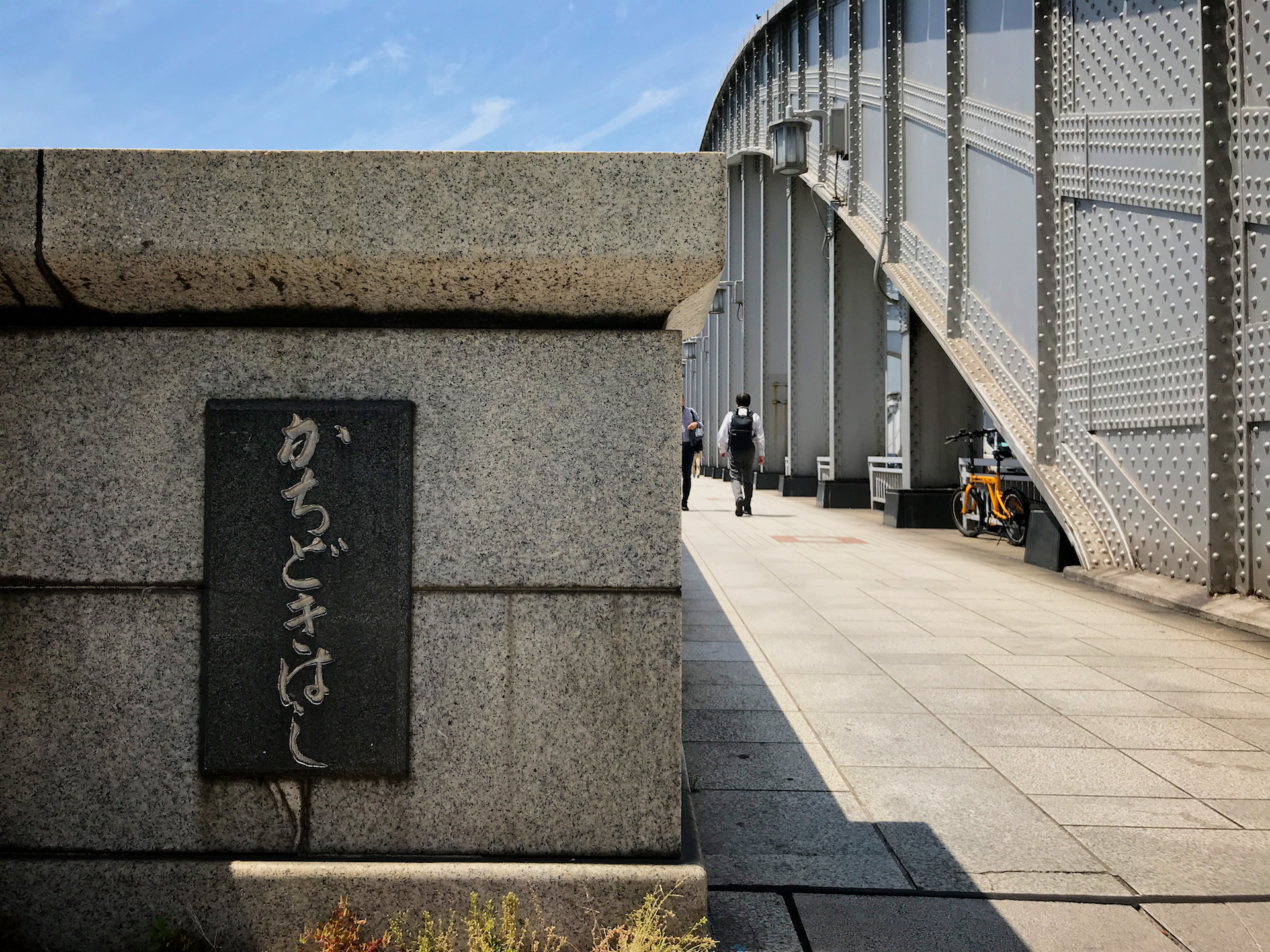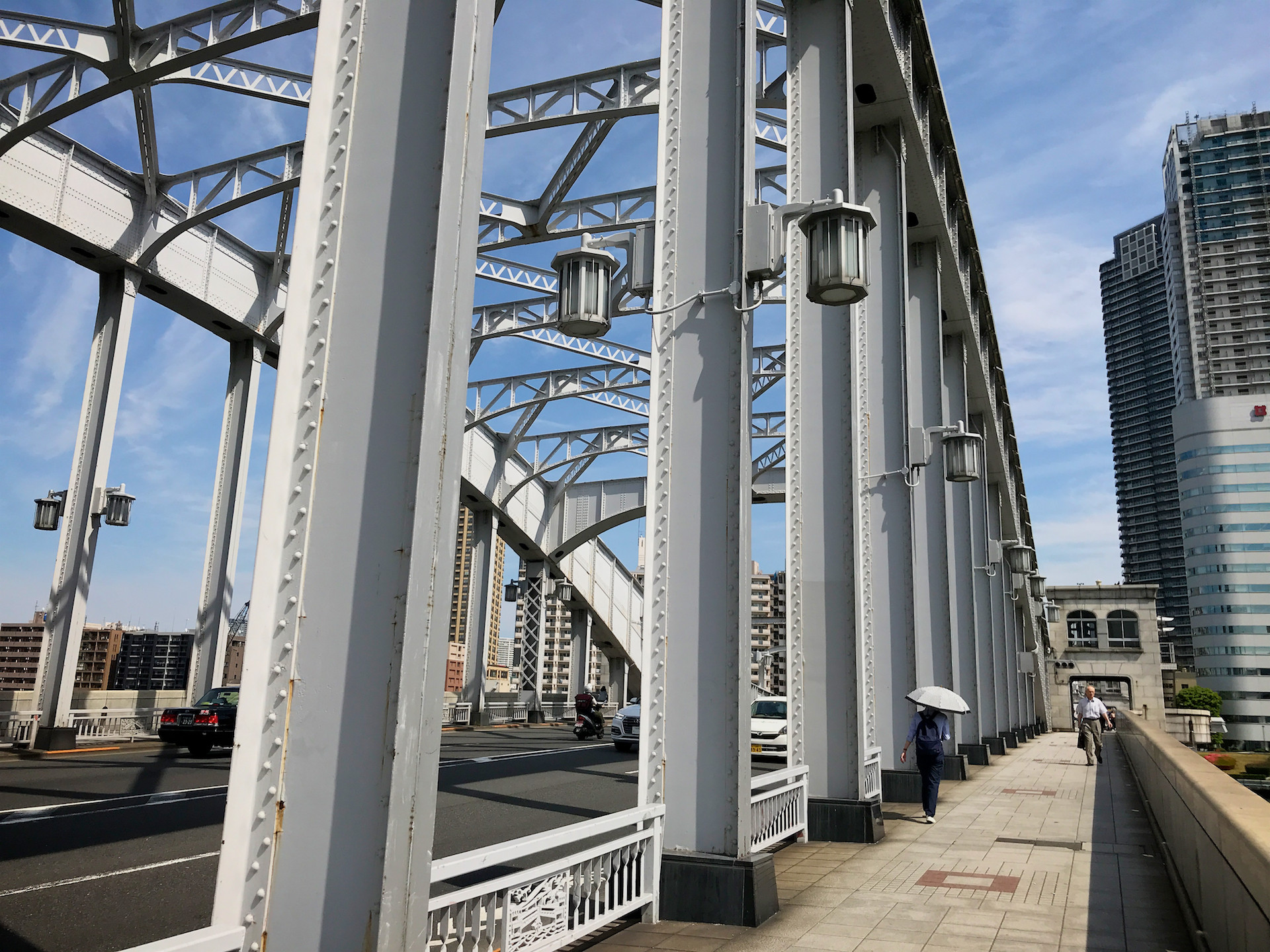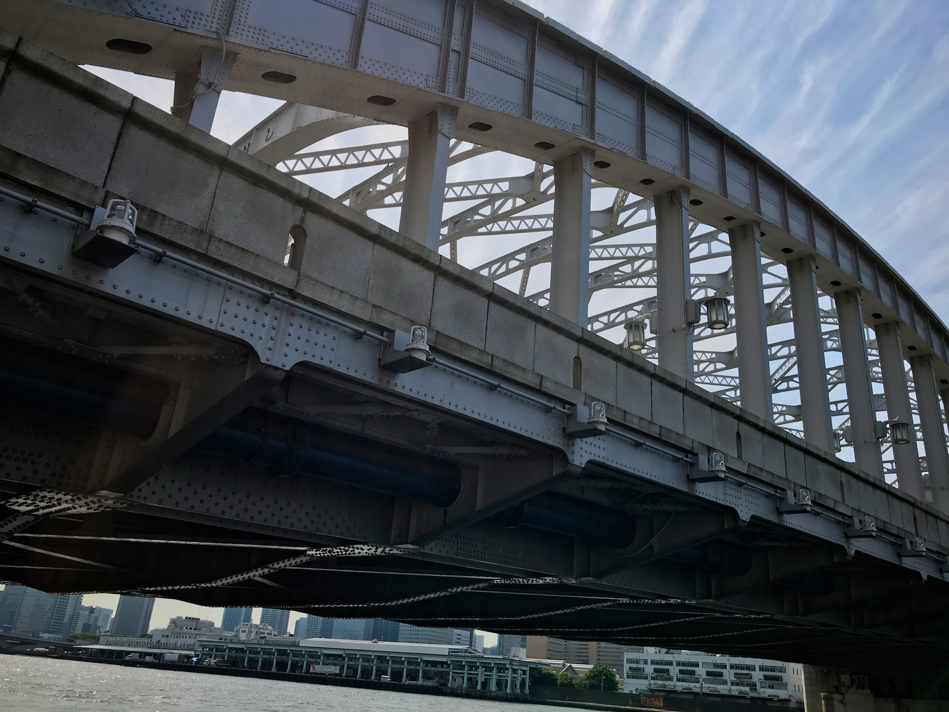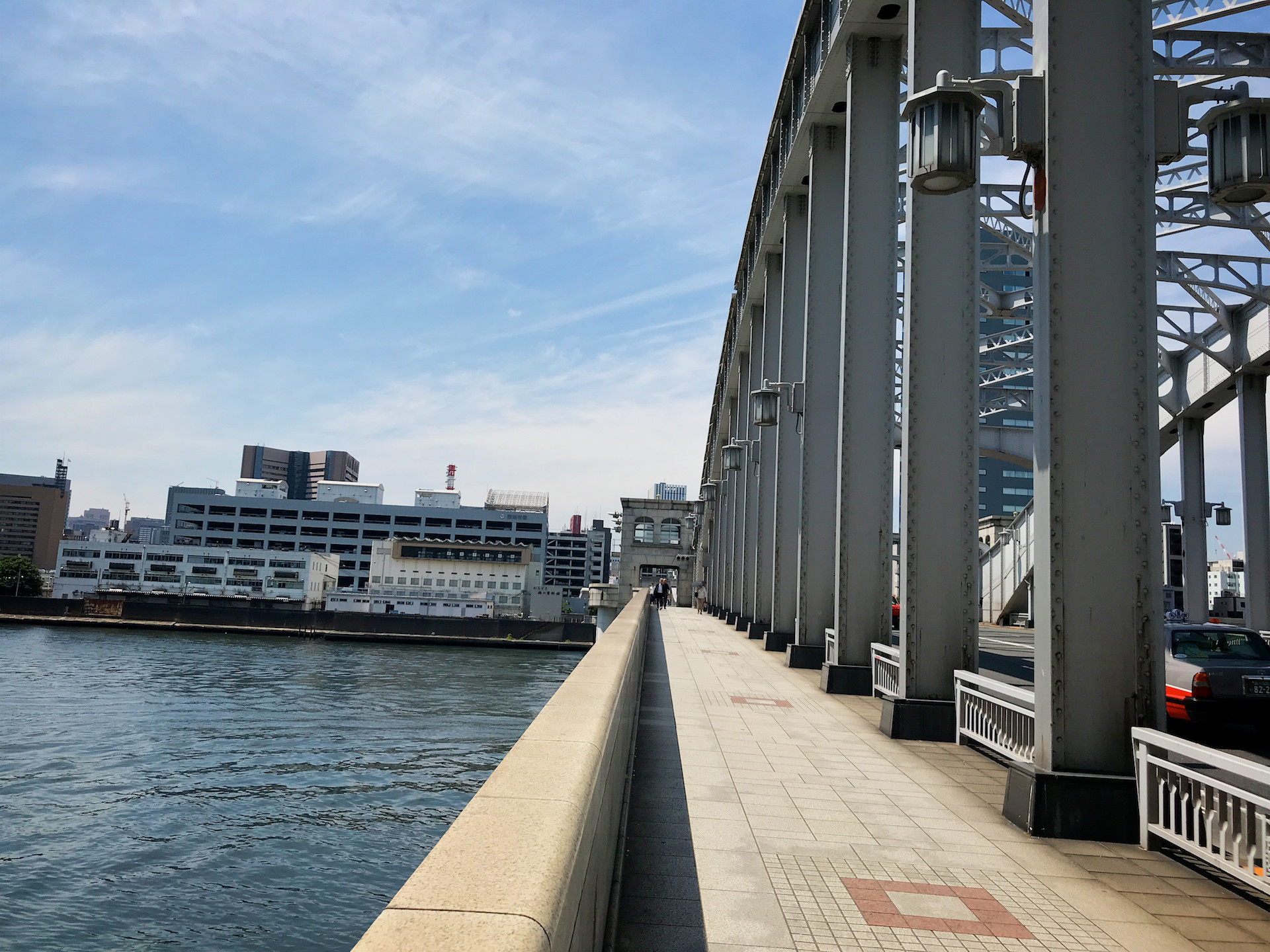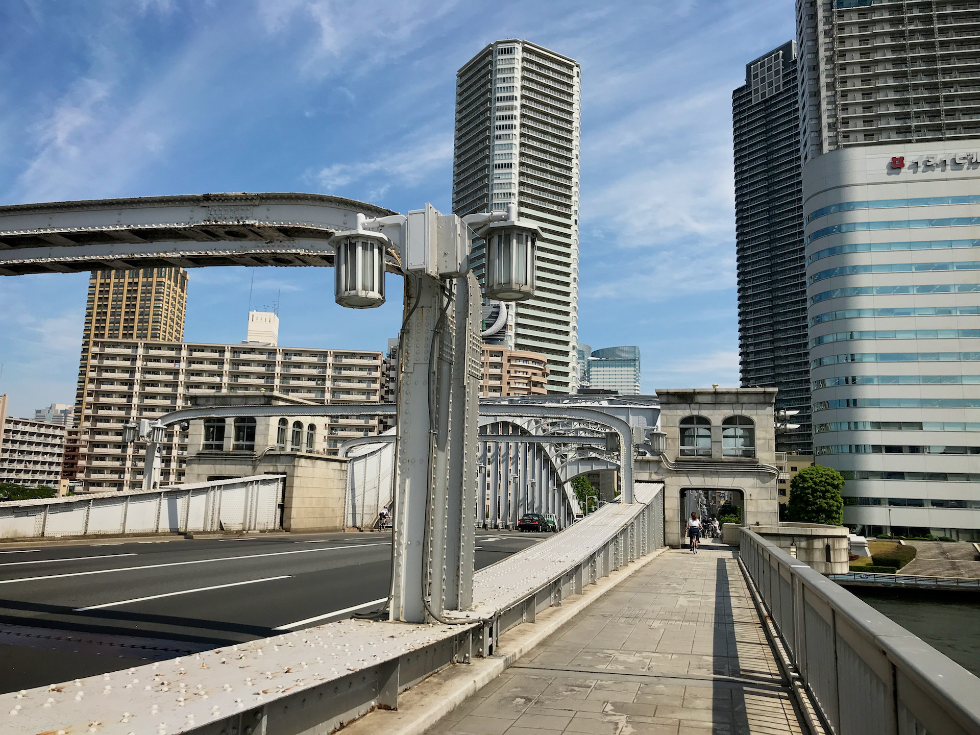おなじようにこの勝鬨橋も万国博覧会のメインゲートとして計画され1940年に完成したそうだが、目と鼻の先にだれも通らない橋がポツンと佇む姿は寂寥感すら漂っている。