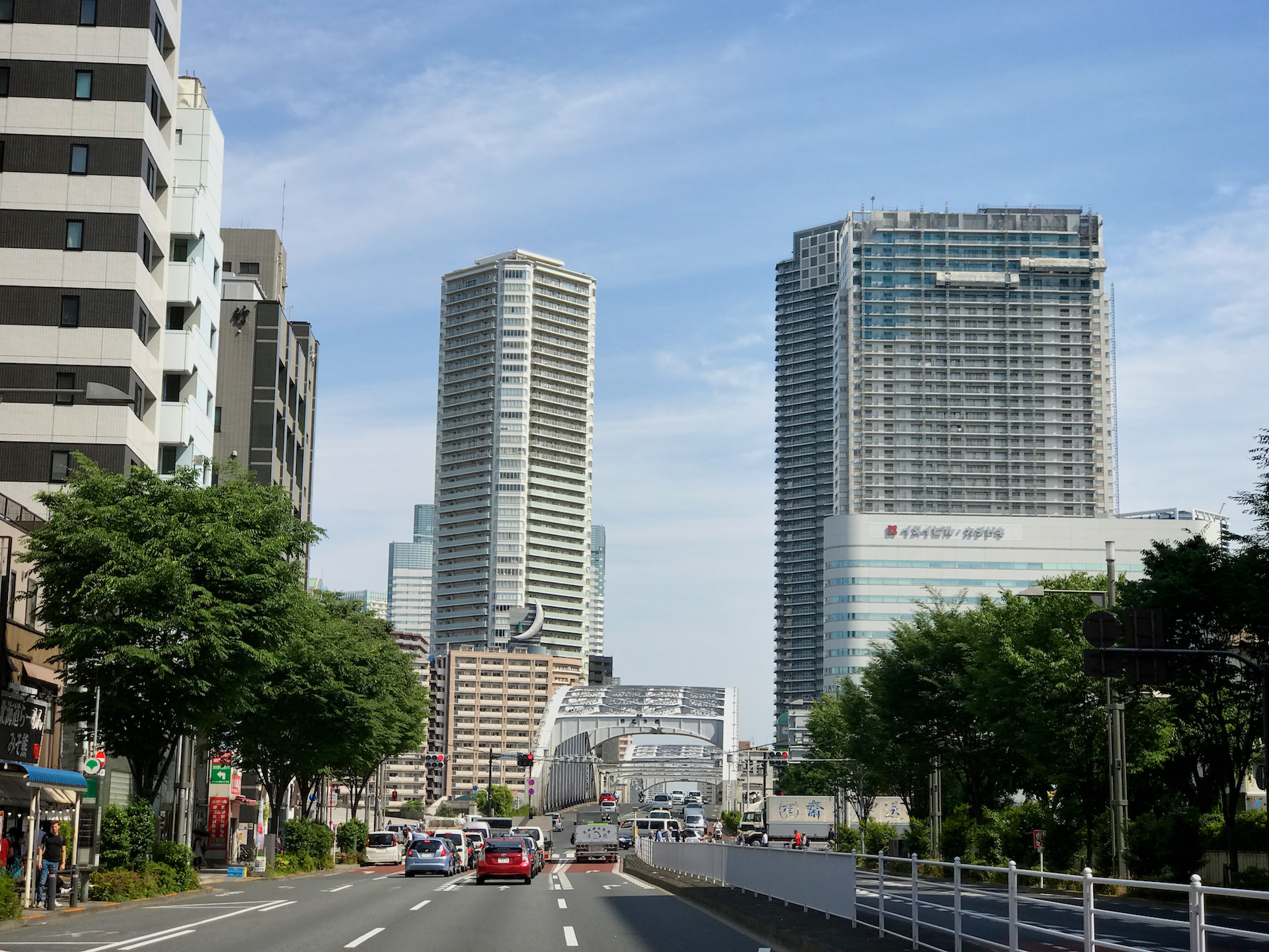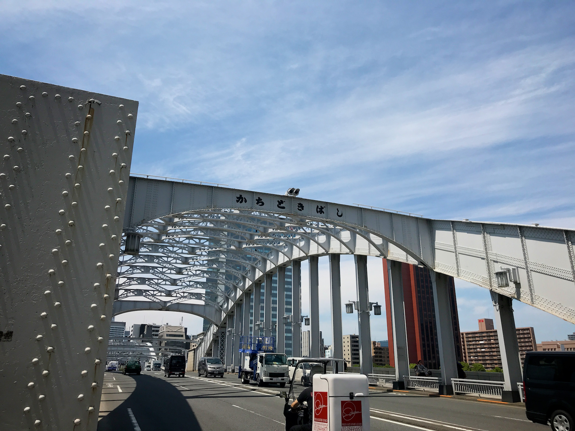 勝鬨橋、月島側から銀座方向に。
